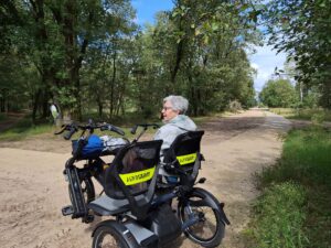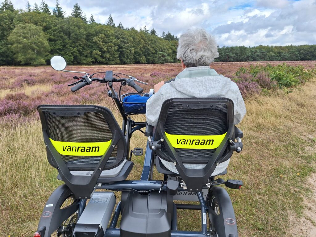 In het voorjaar van 2024 is de nieuwe duofiets is geleverd en die rijdt heerlijk. Ook het bestuur van onze Stichting mocht inmiddels een rondje fietsen en bewoners en vrijwilligers genieten weer volop van de buitenlucht en de mooie omgeving van de gemeente Ede. Ze veren op van alle kleuren en geuren en een regenbuitje is een belevenis!