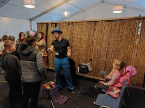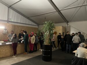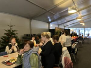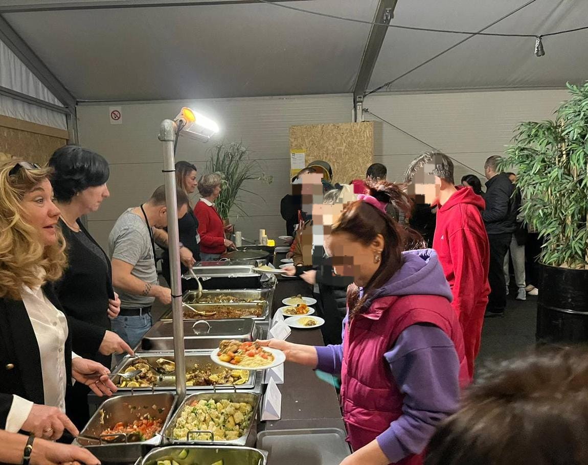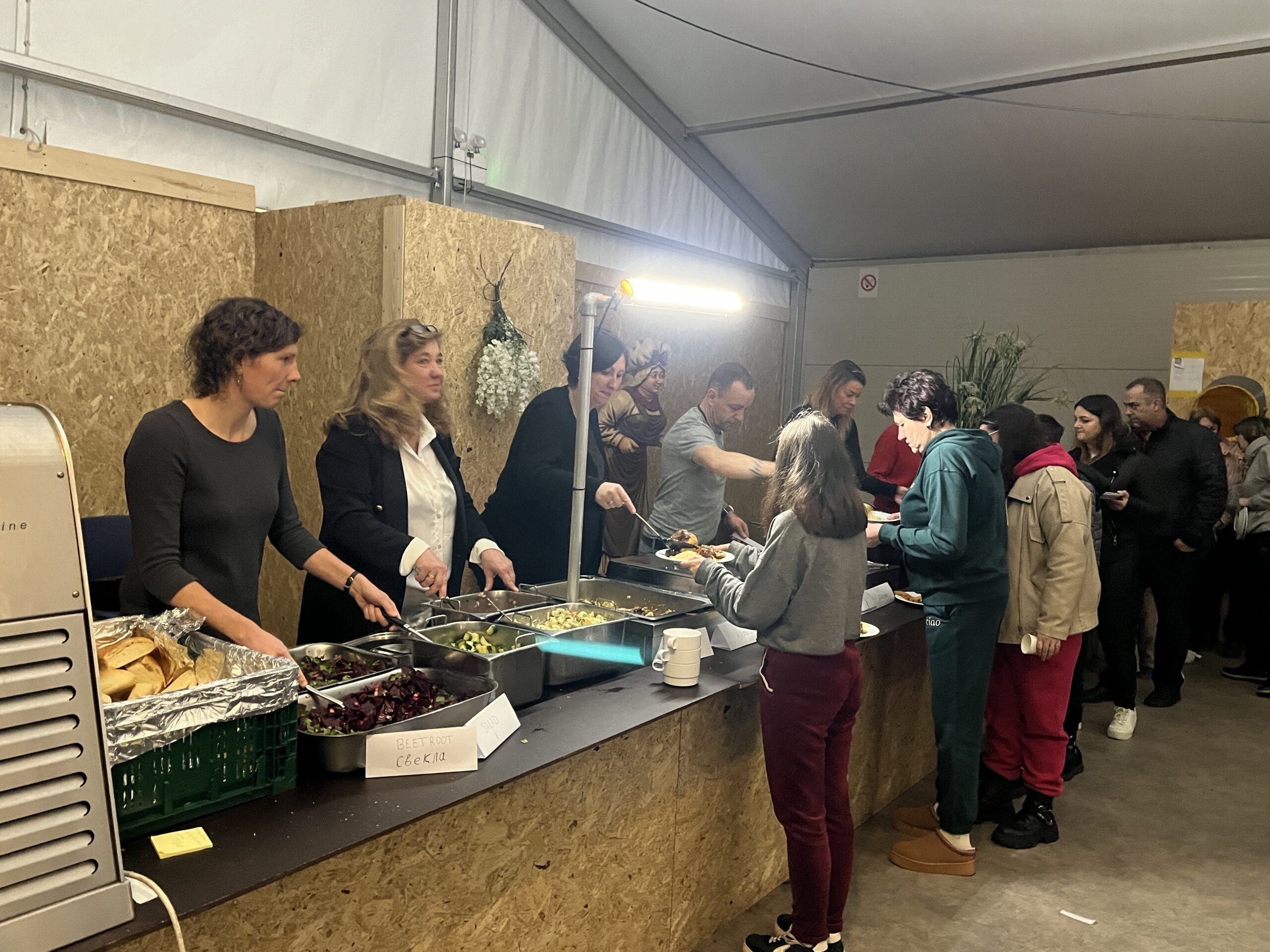 Op 23 december 2023 schoof een groot aantal bewoners van de locatie aan in de eetzaal. Inez heette allen hartelijk welkom en haar woorden werden door woonbegeleider Nadia, afkomstig uit Estland, vertaald in het Oekraïens en met applaus ontvangen. Het buffet was gevarieerd, vrijwilligers schepten de borden vol en iedereen genoot volop. Ballonartiest Pieter verraste de kinderen met zijn ballonkunst.