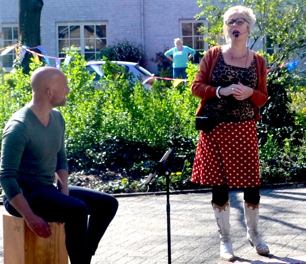 Opnieuw ging men langs bij ziekenhuizen, verzorgingshuizen of mensen die thuis in isolement zitten Voor een act in hun tuin, op een balkon of op de weg voor hun huis of de instelling. Alles volgens de regels van het RIVM, die dit jaar strenger waren, zoals maar 2 personen bij elkaar in de buitenlucht. Dus nu geen ruimte voor fotograaf of livestream. Alles moest op afstand geregeld worden: de contacten, de techniek, overkappingen bij slecht weer etc.