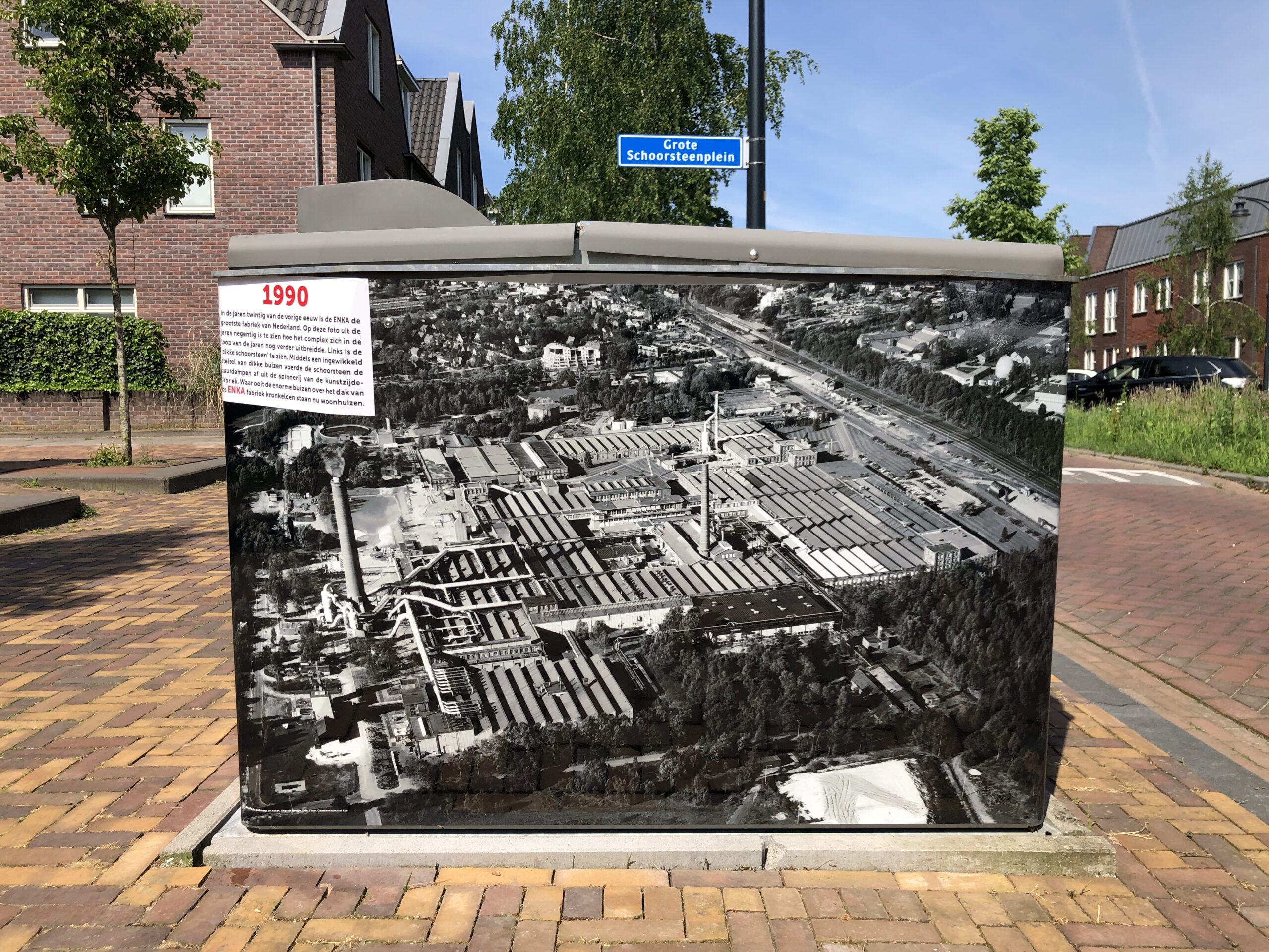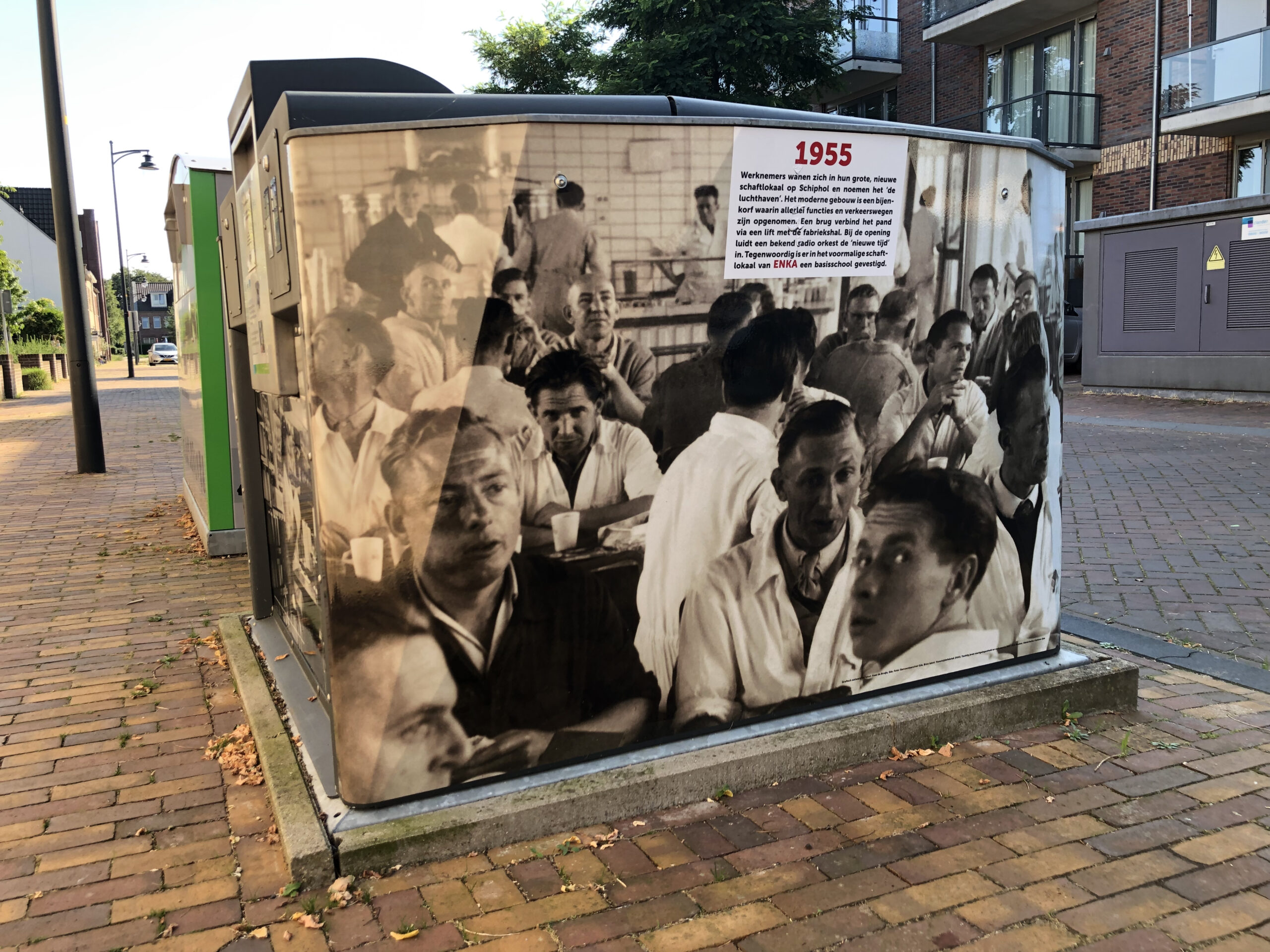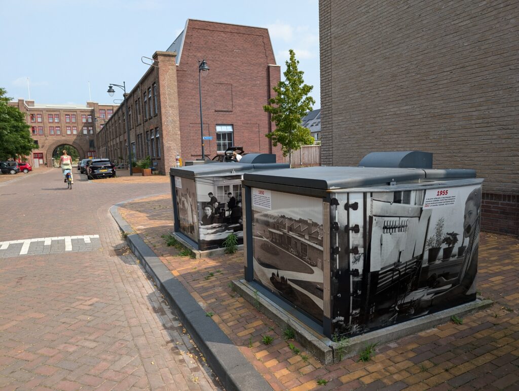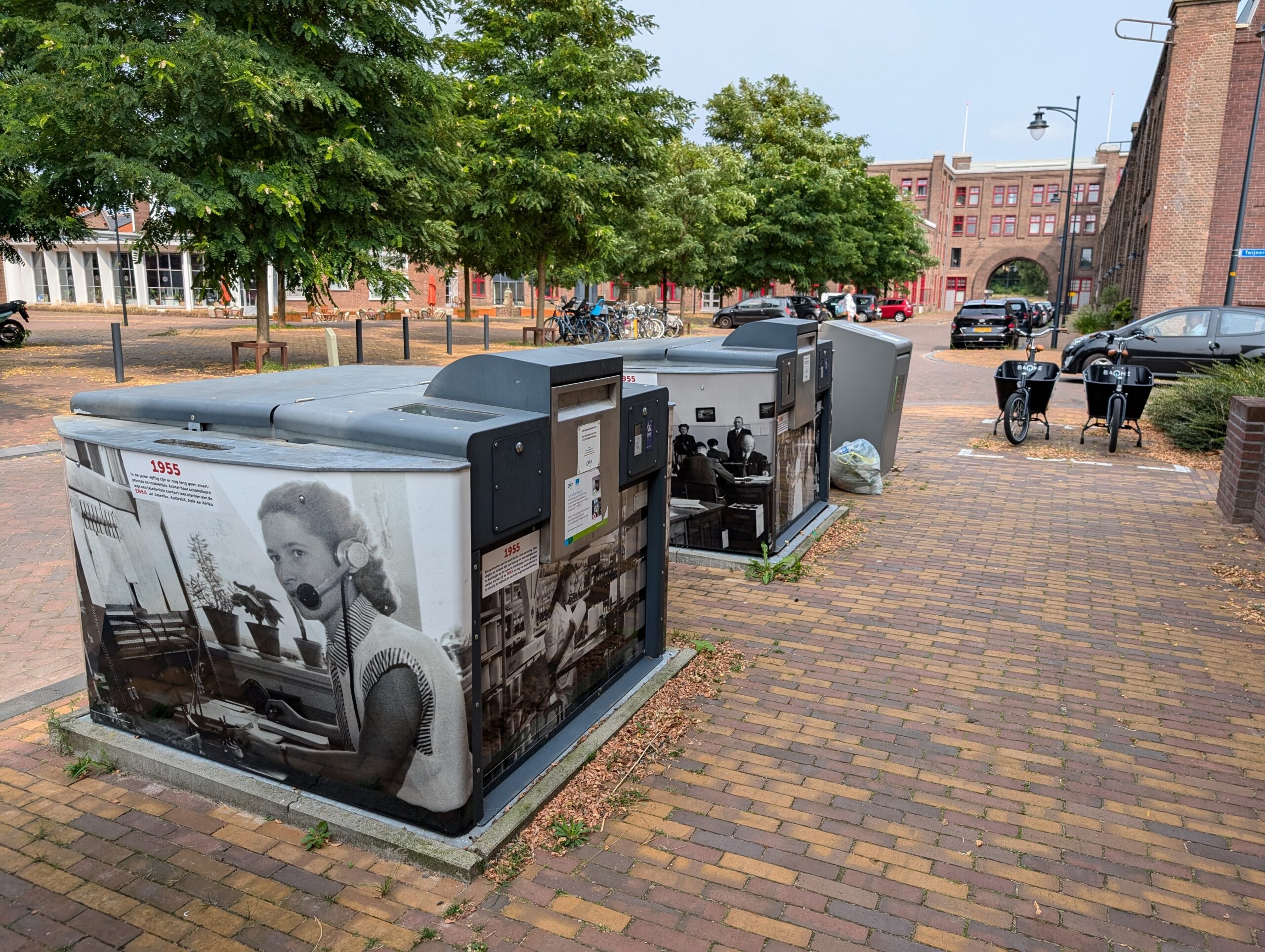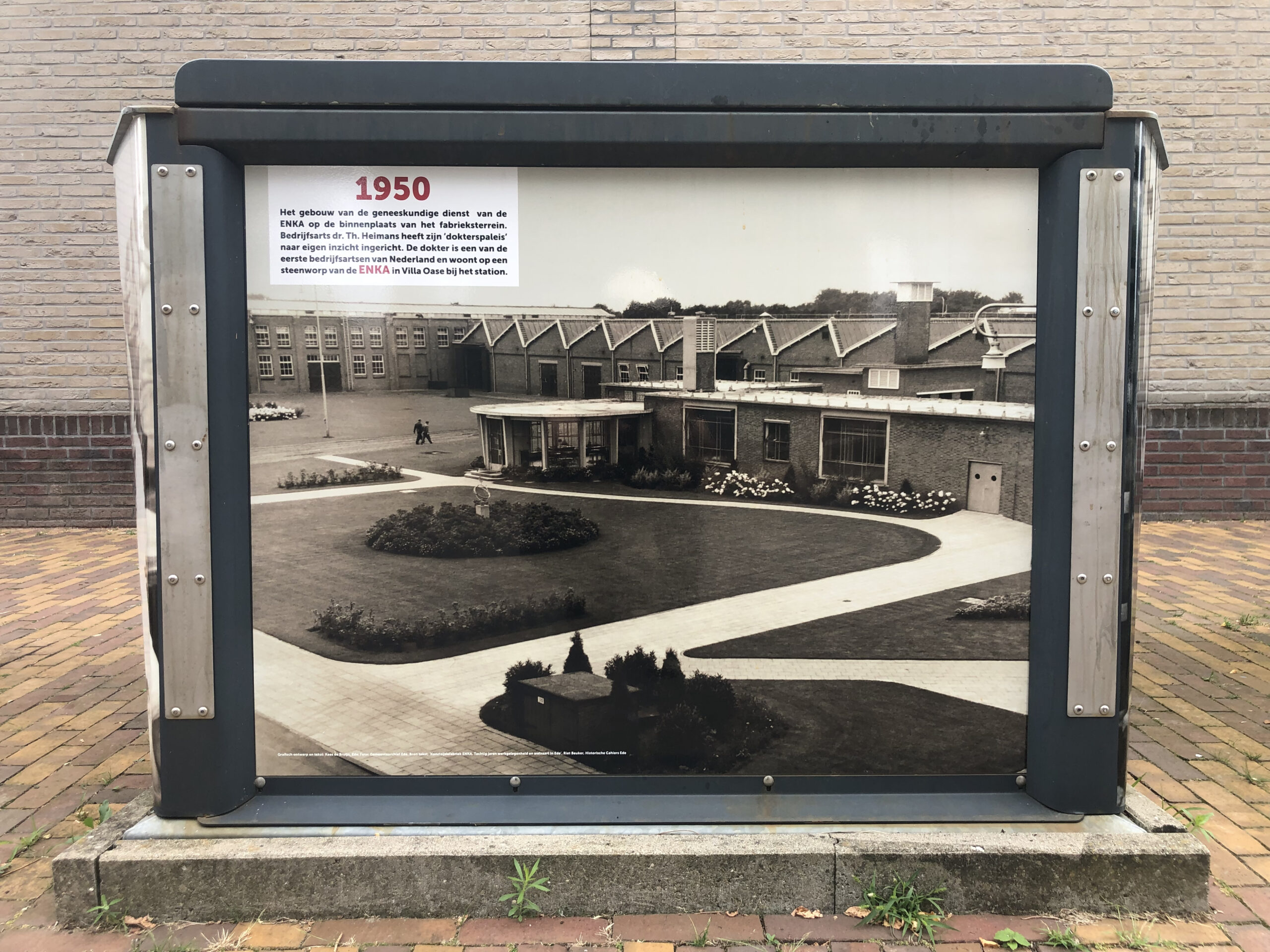 Het bovengrondse deel van een aantal ondergrondse afvalcontainers is inmiddels voorzien van graffitiwerende stickers. U vindt ze bij het Poortgebouw, op de Sterkerij (2x), de Twijnerij, de Enkalaan en de Akulaan, met foto’s, voorzien van datum en een verhaal over wat er op de bewuste plek gebeurde en wie er werkten. Wellicht komen er nog meer, maar van het huidige ‘Verhaal van Enka’ is een folder met wandelroute beschikbaar in de wijk bij De Fietser en het voormalige EHBO-gebouw en in Ede-Centrum bij Cultura.